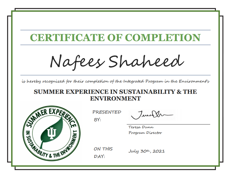 Four, 1-week-long modules, each focused on a different environmental or sustainability-related subject and lead by IU faculty